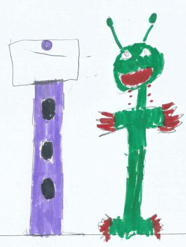 Elle est carrée et rectangulaire. Elle peut rester allumée 6 heures. Elle est grande. Elle a des petits boutons. Quand elle croise des gens dans la rue, elle fabrique des cadeaux.