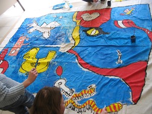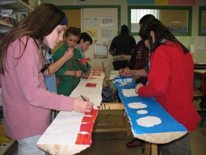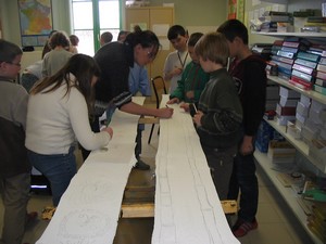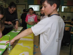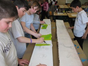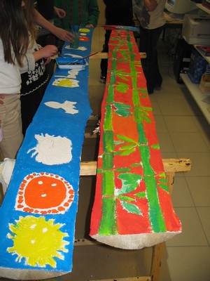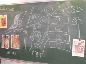 L'école de Boz participe à un projet autour de la calligraphie : « Je dessine, jeux de signes » avec le musée Chintreuil de Pont de Vaux. Rachel Duby est venue une journée à l'école, les CM2 ont peint une toile et les CM1 4 totems. Ils seront exposés en fin d'année. Nous avons fait des dessins et nos images sont inspirées des dessins de Jacques Le Roux. Nous avons d'abord fait notre dessin ensuite nous les avons dessinés sur le totem puis peints.