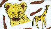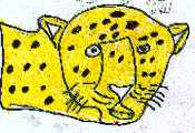 Ils avaient tous des taches sauf les léopards, qui n'en avaient pas et puis, ils ne faisaient pas grand chose non plus pour en avoir. Un beau jour de printemps, des visiteurs vinrent mettre de la peinture noire sur les arbres qu'ils allaient couper. Un léopard un peu curieux s'aventura vers eux. Il s'approcha des arbres, un homme le vit et il lui cria : " Sauve toi sale bête ! ", en lui lançant le pinceau dessus. Le léopard, apeuré, s'enfuit avec du noir sur lui. Il essaya de l'enlever mais la peinture était déjà sèche. C'est ainsi que les léopards acquirent leurs tâches. |