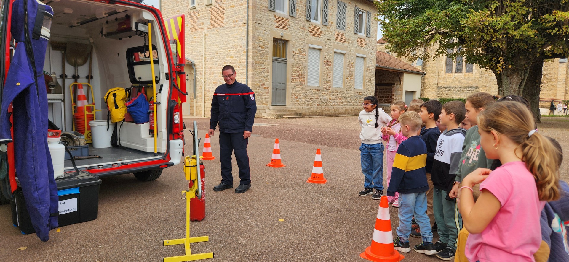 À l’extérieur, un deuxième groupe a découvert l’intérieur du camion des pompiers et tout le matériel qui le compose.