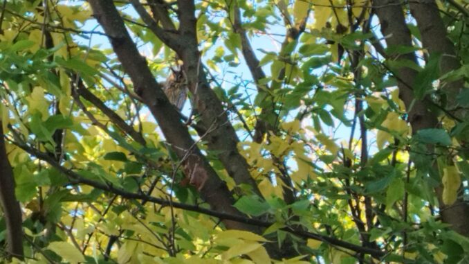 Bonjour les enfants, les hiboux sont présents dans le quartier depuis de nombreuses années. L’année dernière, j’en ai eu 17 dans mes arbres en face de l’école. Je fais bien attention de ne pas les déranger car ils mangent les souris la nuit. Le jour, ils dorment, mais que d’un oeil, ils nous surveillent aussi. Ils sont très beaux à voir s’envoler dès que la nuit tombe. Je pense qu’ils ne resteront pas quand les feuilles vont tomber. Si vous regardez bien, vous les verrez dans un arbre qui ne perds pas ses feuilles en hiver.