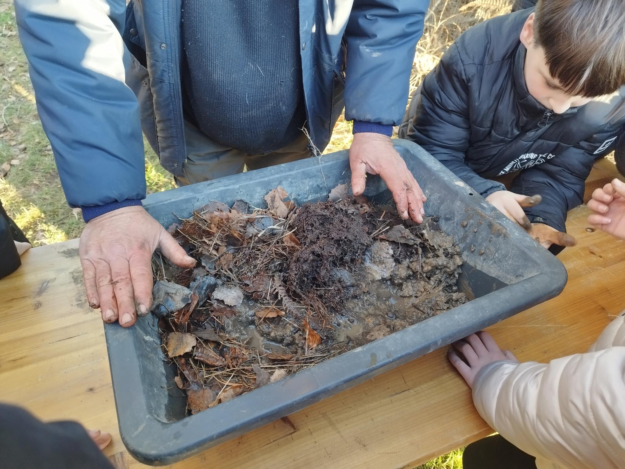 Nous avons vu de la terre, de la tourbe (légère, fibreuse, spongieuse), du sable (qui se défait en petits morceaux et crisse sous les doigts) et de l’argile (une boule d’argile garde sa forme même lâchée au sol).