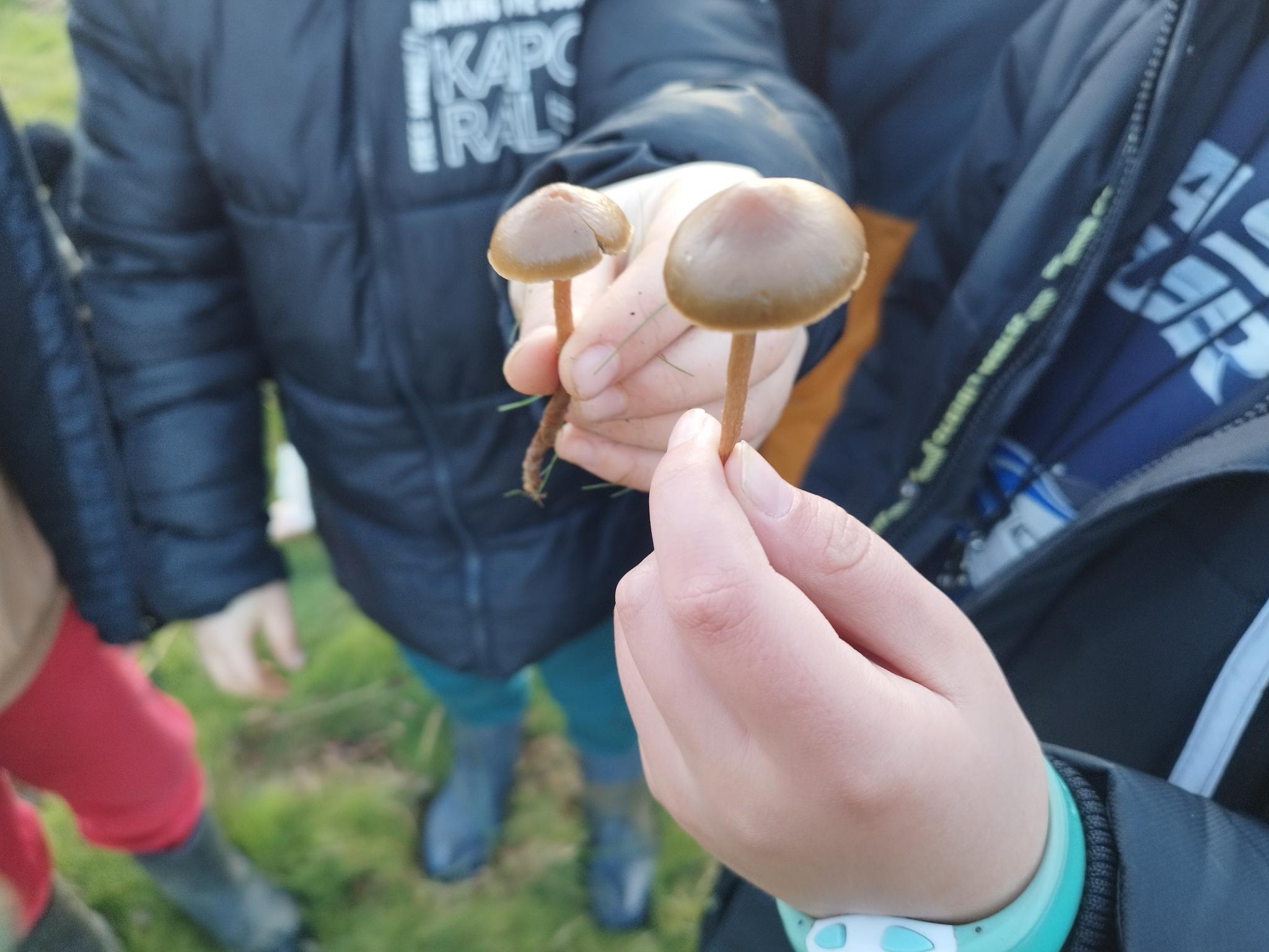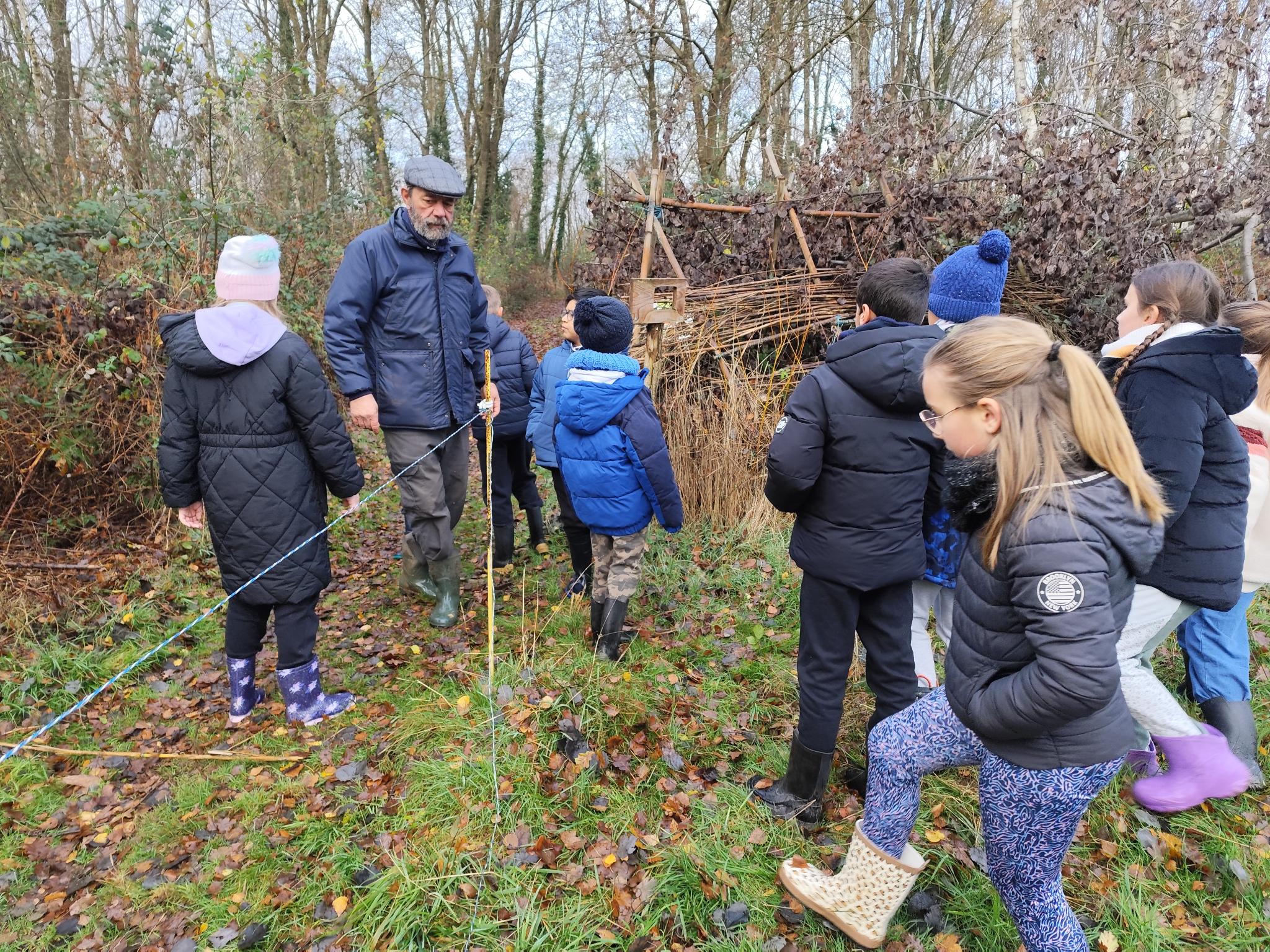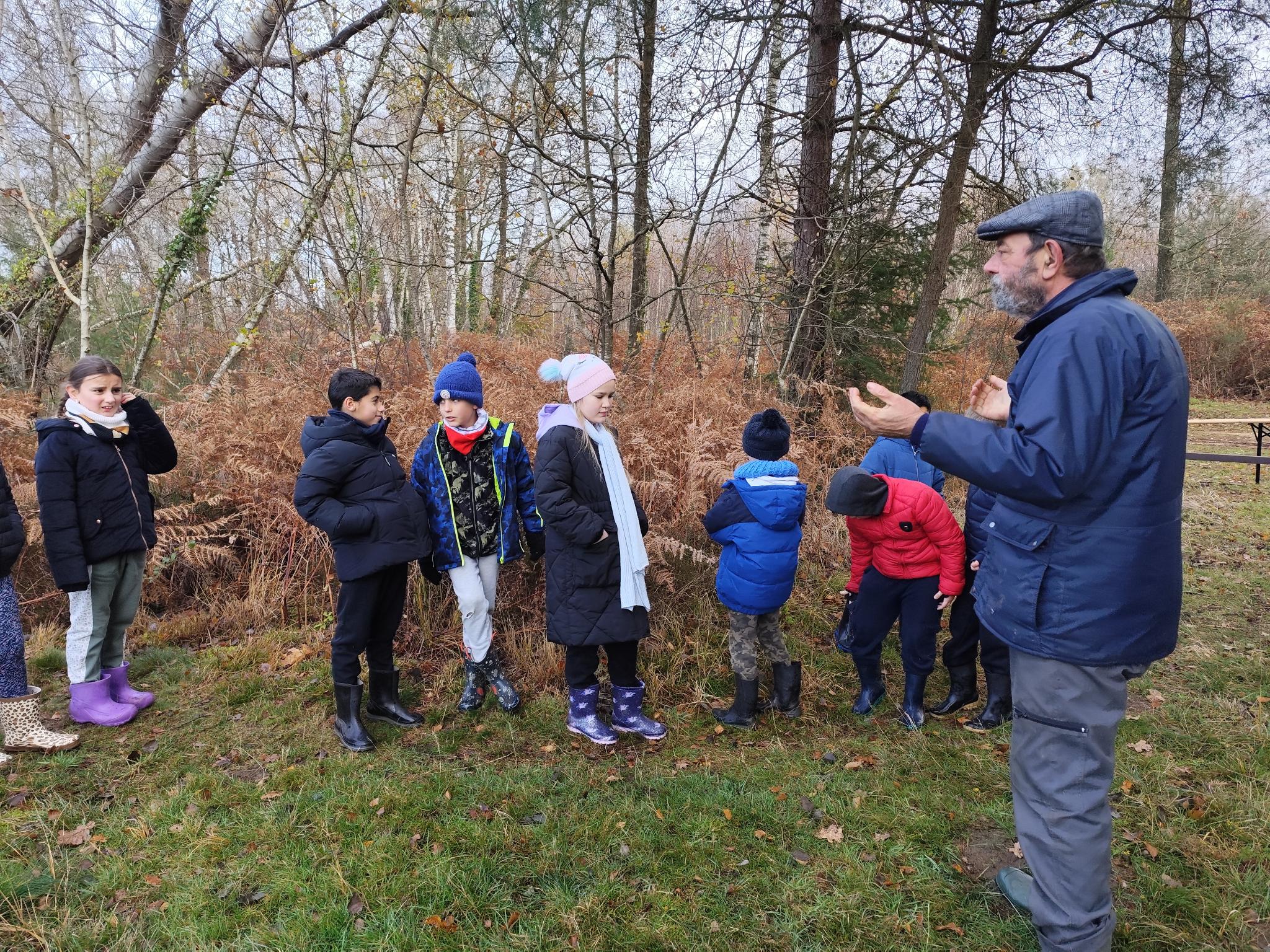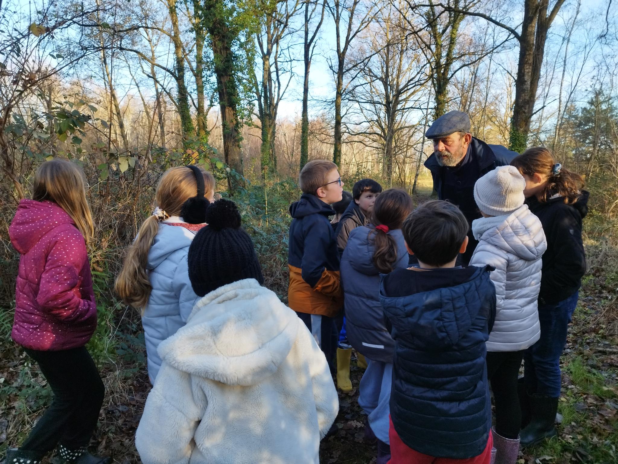 Voici quelques exemples de ce qui a été vu (une cabane, des champignons, des trous, une mare, des arbres, de la terre humide, des ronces…), entendu (le vent, les oiseaux, les feuilles qui bougent…), senti (l’air, l’odeur de la terre, la nature…), touché (l’herbe mouillée, la terre, l’eau de la mare, des racines…), ressenti (du plaisir, de la joie, de l’humidité, du froid, le bon air…).