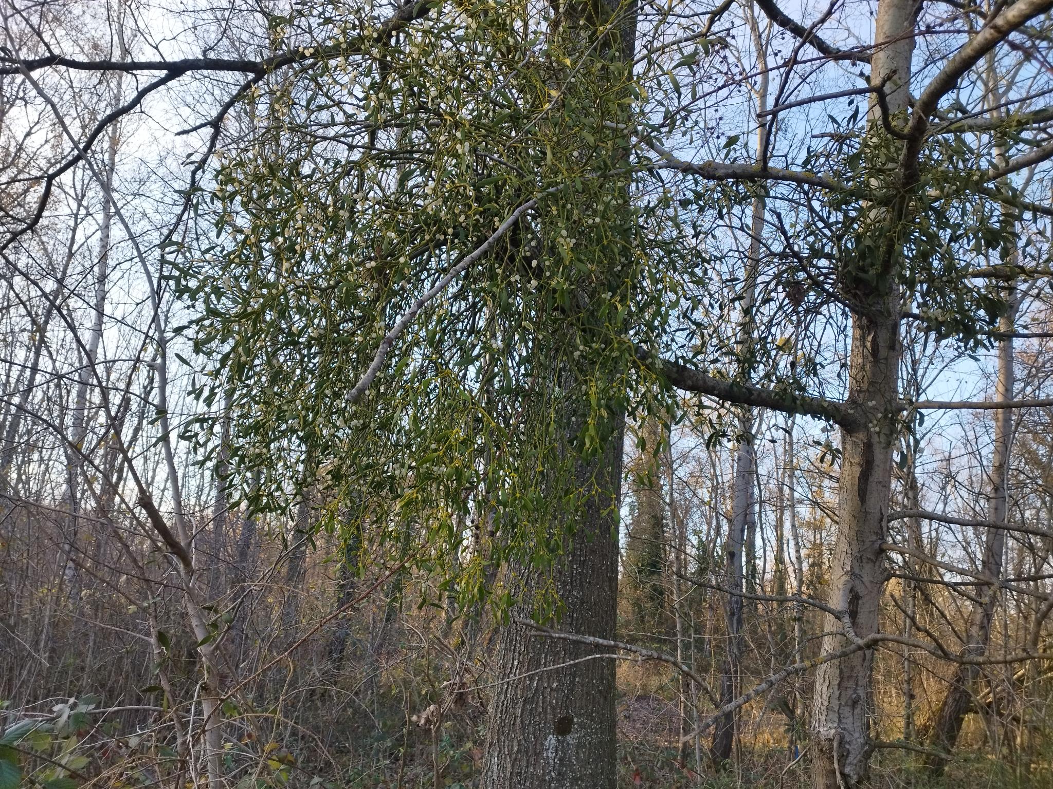 Nous avons vu du gui et ses fruits qui contiennent une graine entourée d’une pulpe collante. Cette plante est un parasite qui pousse sur les branches d’arbres. Les druides croyaient que le gui avait des propriétés magiques et qu’il les protégeait des mauvais esprits. Ils coupaient le gui avec une faucille d’or lors de cérémonies rituelles, notamment pendant le solstice d’hiver, le 21 décembre