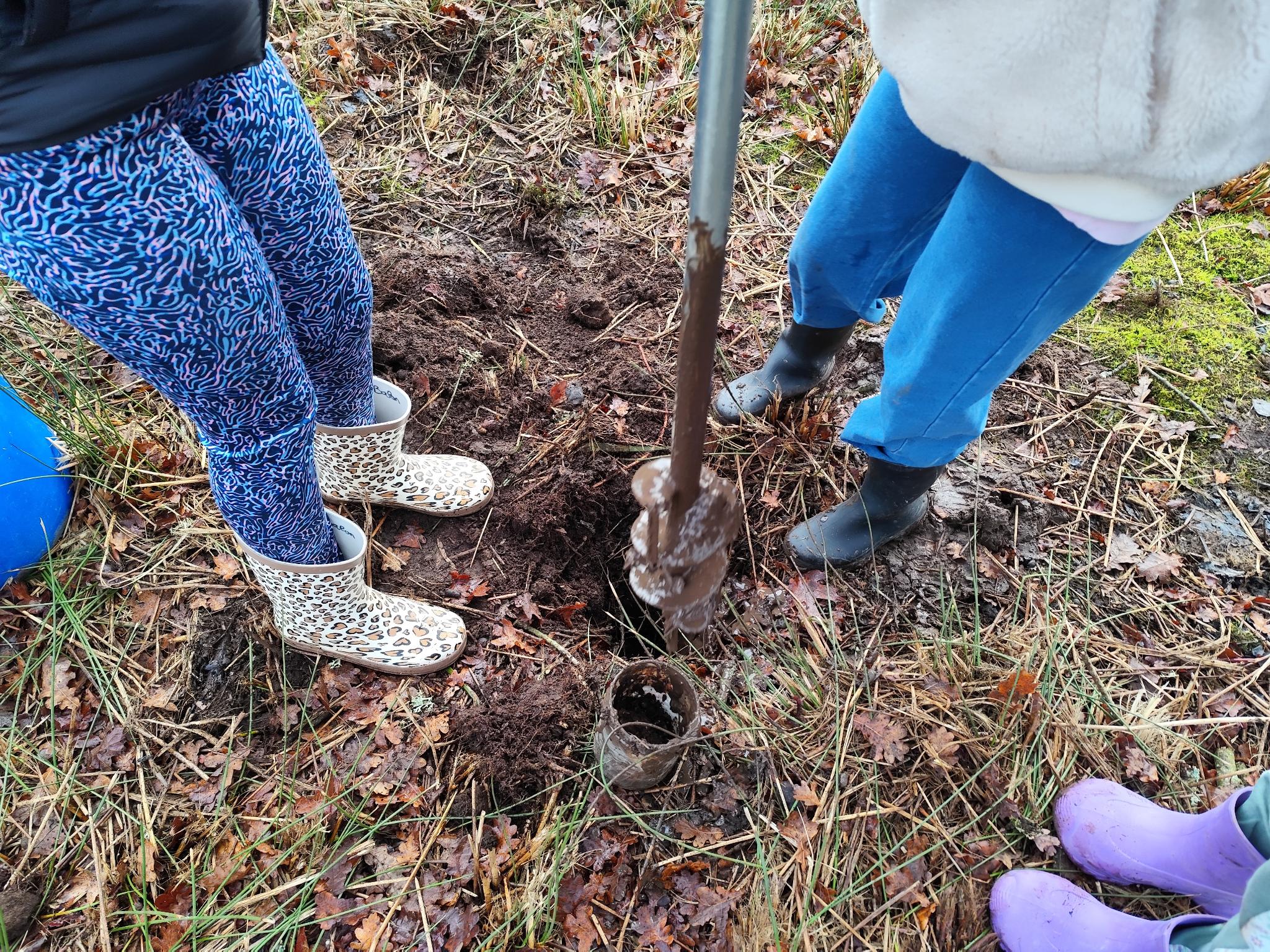 Nous avons creusé des trous avec des pelles et des tarières pour voir à quelle profondeur se situe l’eau sur la lande tourbeuse. A certains endroits, elle se situe à 1 mètre de profondeur, à d’autres, à une trentaine de centimètres.