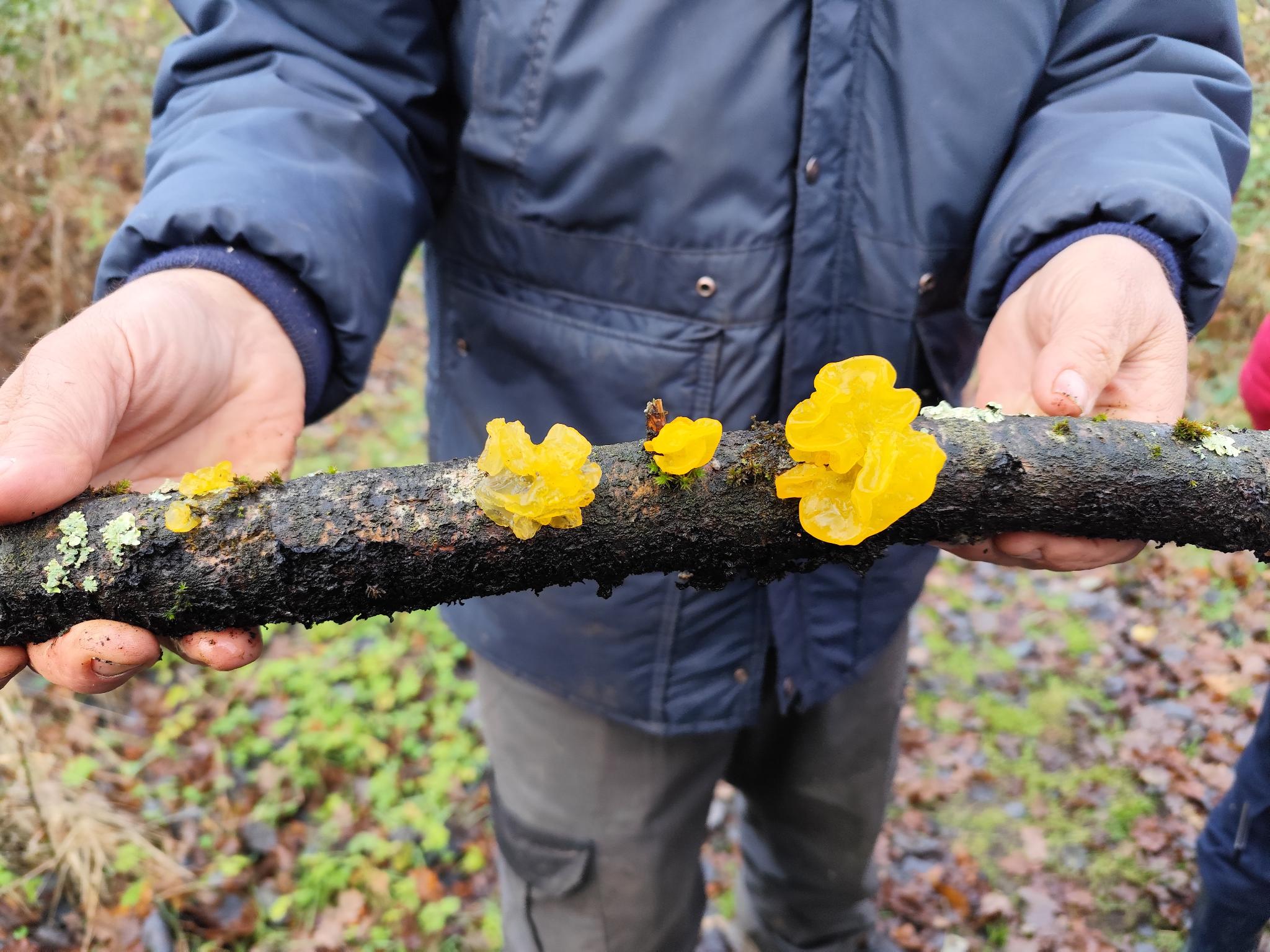 Nous avons également touché cet autre champignon, la trémelle gélatineuse.