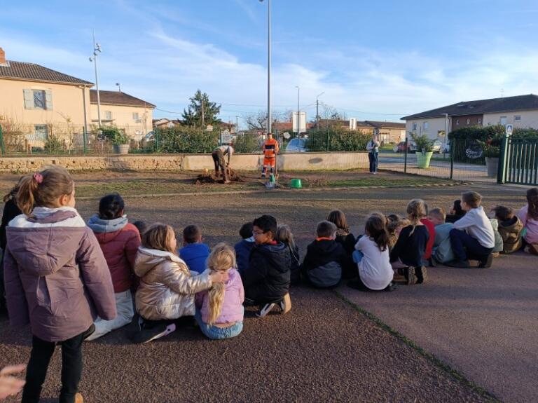 Un catalpa a été planté ce jeudi 18 décembre à l’école d’Ozan.