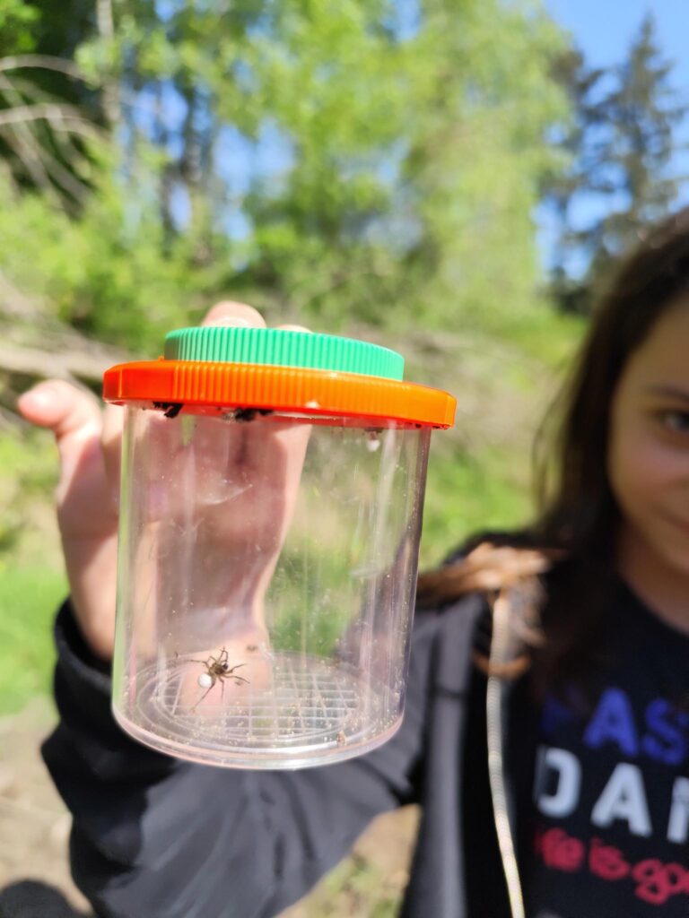 Nous sommes ensuite partis par groupe à la recherche de petites bêtes que nous pouvions mettre dans des boîtes d’observation. Ce sont principalement des araignées qui ont été trouvées.