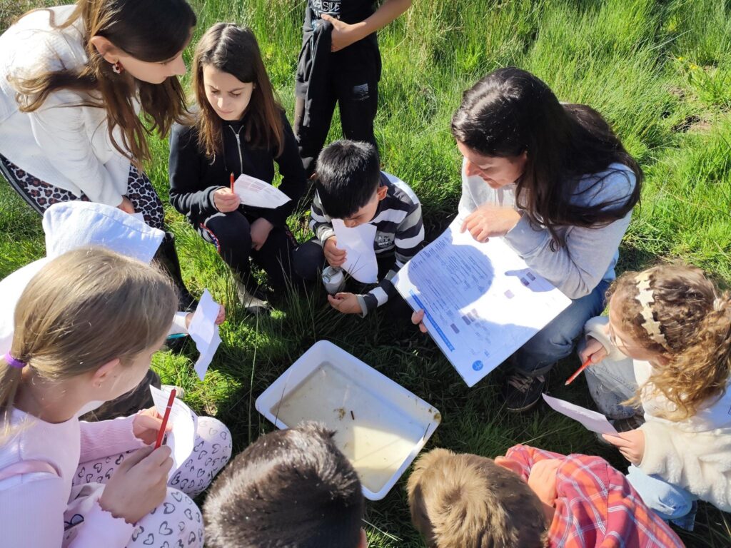 Séverine nous a montré une clé de détermination des petites bêtes aquatiques. Grâce à celle-ci, nous avons reconnu une notonecte, une larve de moustique, un mini têtard et des gerris (araignées d’eau), des larves de libellule…
